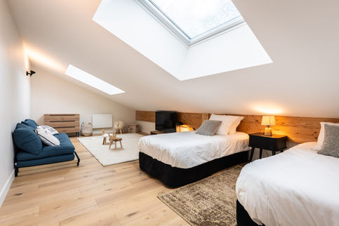 qui a donné naissance à 2 chalets mitoyens indépendants, identiques et totalement insonorisés :